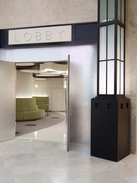Grâce à sa position dans le prestigieux XVIe arrondissement de Paris, et sa proximité avec la Tour Eiffel, cet actif immobilier en bordure de la Seine offre un très beau dégagement, sans vis-à-vis et une perspective sur la « skyline » du 16ème arrondissement. Notre intervention en milieu occupé sur cet immeuble de grande hauteur et tout en courbe s’est réalisée en 3 ans. Le projet consistait à remettre l’ensemble aux normes actuelles et à redonner une ligne claire indispensable à la lecture des espaces et des circulations qui l’innervent et un confort partagé des espaces communs. Par exemple, l’habillage des paliers est en acier sérigraphié avec, à chaque fois, la signalétique de la localisation. Cet immeuble héberge plusieurs locataires dont le groupe Imprimerie Nationale.