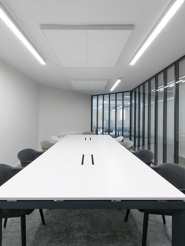 Nous avons rythmé ce grand bâtiment avec de petits espaces de rencontre à taille humaine grâce à de petites interventions minimalistes.