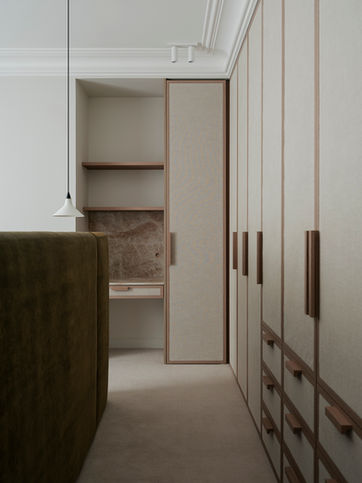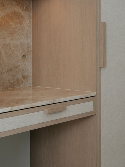 Les agencements sur mesure ont été crée avec une touche de tissu pour une ambiance